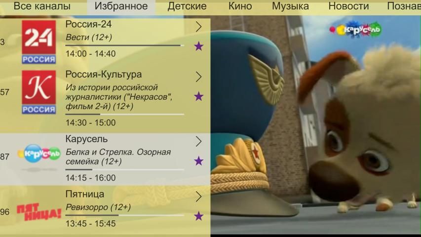 Поддерживается "Электронный телегид" EPG в формате xmltv.xml.gz