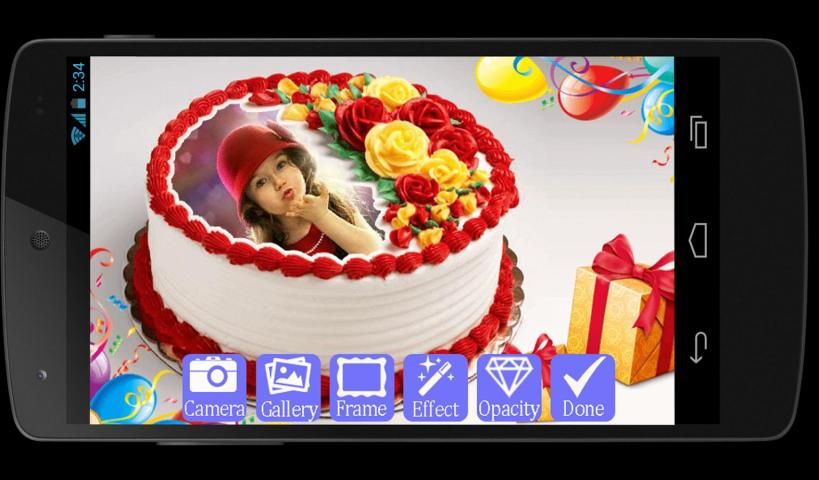 फोटो जन्मदिन का केक एप्लिकेशन पर जन्मदिन फोटो फ्रेम में एक तस्वीर बनाने के लिए है।