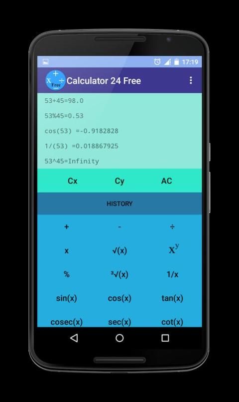 Android के लिए नि: शुल्क कैलक्यूलेटर 24 एक न केवल खूबसूरती से डिजाइन एप्लिकेशन लेकिन यह भी किसी भी समय और कहीं भी उपयोग करने के लिए आसान है। यह बस एक क्लिक के साथ एक संपूर्ण समस्या को हल करने कैलकुलेटर है। Calculation.Also इस कैलकुलेटर का उपयोग करते समय पृष्ठभूमि में काम कर अपने मीडिया प्लेयर संगीत का आनंद लें करने के बाद आप मिल परिणाम बोलता है कि पहली app।