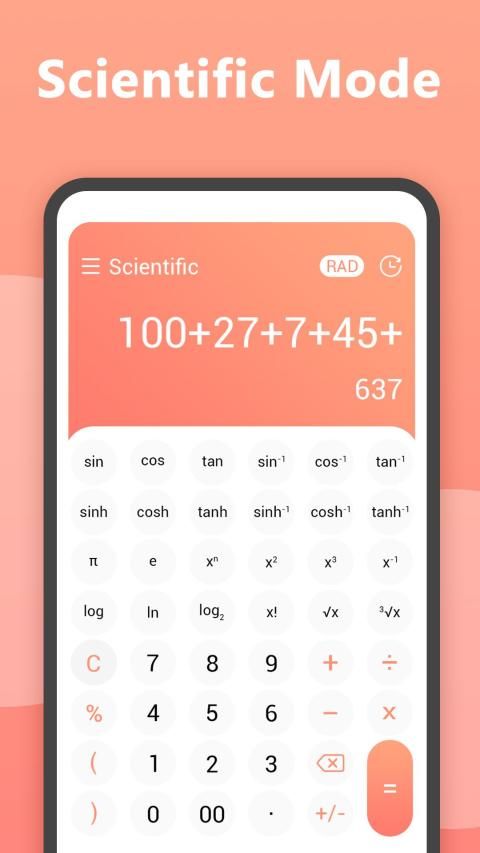 Scientific Calculator includes trigonometric calculation, anti-trigonometric calculation, power calculation, logarithmic calculation, square root calculation, cube root calculation, factorial calculation, π calculation, etc.