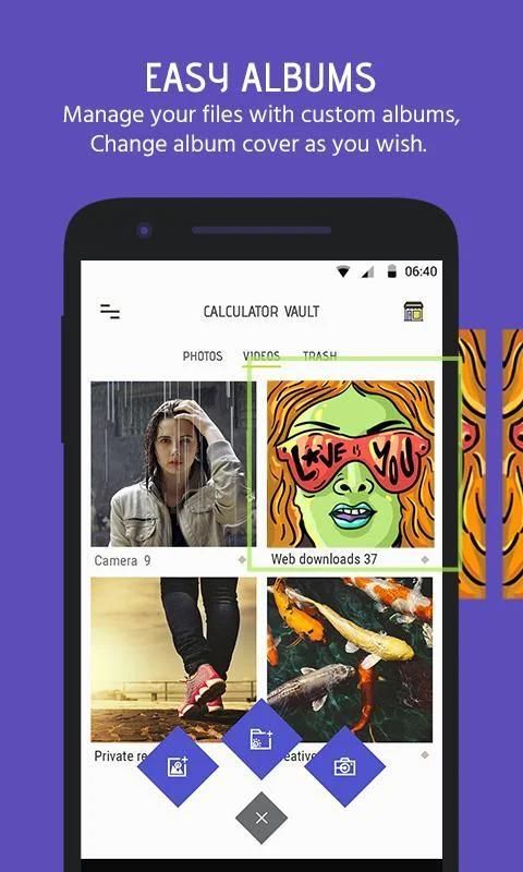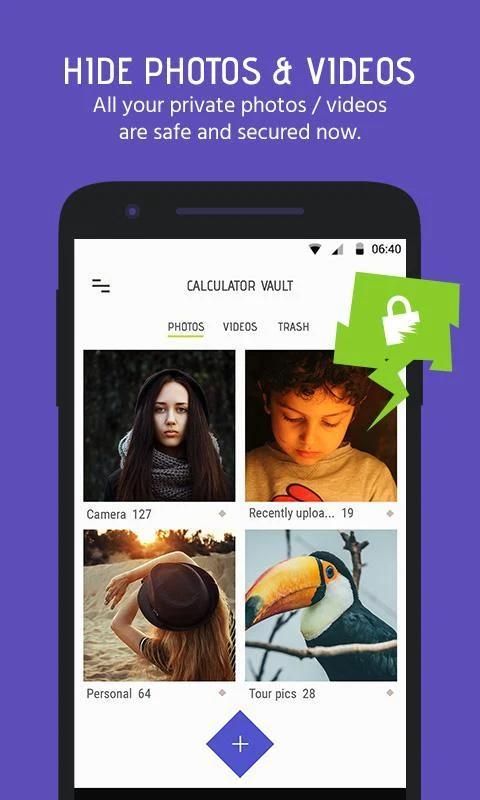 शक्तिशाली गोपनीयता की सुरक्षा एप्लिकेशन को छिपाने और पिन / पासवर्ड / फिंगरप्रिंट ताला पीछे चित्रों और वीडियो को प्रयोग करता है। फ़ोटो और वीडियो लॉकर गोपनीयता एप्लिकेशन को आपके फ़ोन पर स्थापित - आप तो कोई आपके मित्रों और परिवार के लिए अपने स्मार्ट फोन दे जब कैलक्यूलेटर तिजोरी में चिंता करने की जरूरत सुरक्षित कोठरी में आपकी व्यक्तिगत या शरारती चित्र और वीडियो आयात कर सकते हैं,। कैलक्यूलेटर तिजोरी वॉल्ट आसानी से छिपाने के लिए और अपने फोटो और वीडियो कि आप दूसरों को देखने के लिए नहीं करना चाहती एन्क्रिप्ट करने के लिए एक शानदार गोपनीयता की सुरक्षा एप्लिकेशन है।