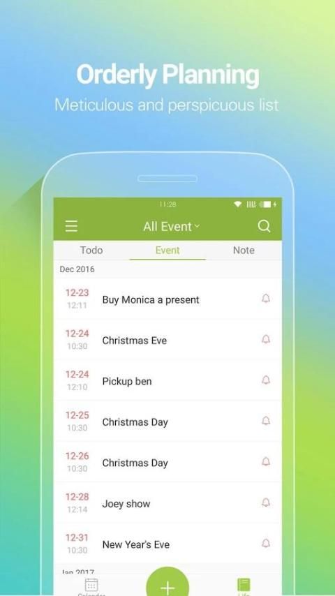 सरल, सुंदर और उपयोगी, WeCal, कैलेंडर की जांच, आप दैनिक डेटा स्टोर करने में मदद नोट, सेट अलार्म ले, करने के लिए करते हैं और आयात त्योहारों घटनाओं, सूची याद करने के लिए डिजाइन अपने गूगल कैलेंडर, साथ सिंक्रनाइज़ जो सबसे शक्तिशाली कैलेंडर सहायक है. क्या अधिक है, आप एक क्लिक से फेसबुक या संपर्क में आने से अपने मित्रों के जन्मदिन आयात कर सकते हैं!