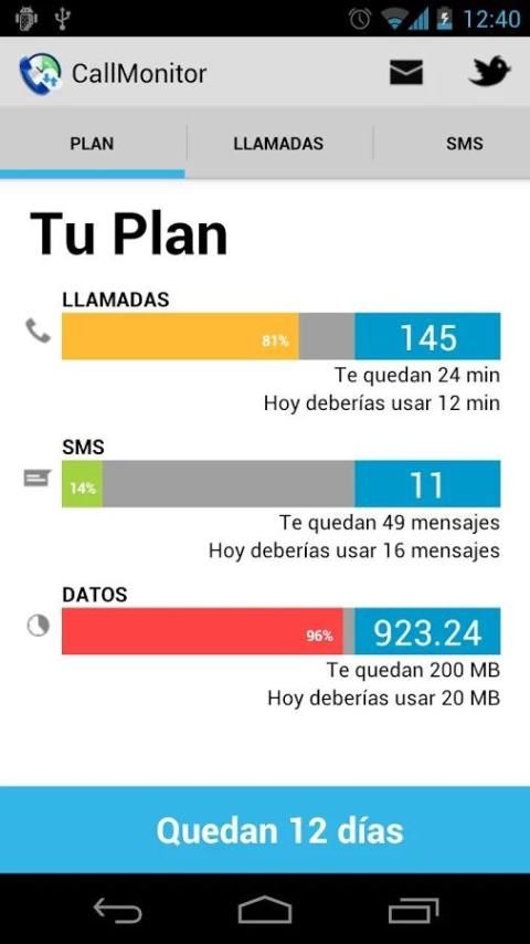 Plan - Mide los minutos consumidos de tu plan y muestra los restantes.