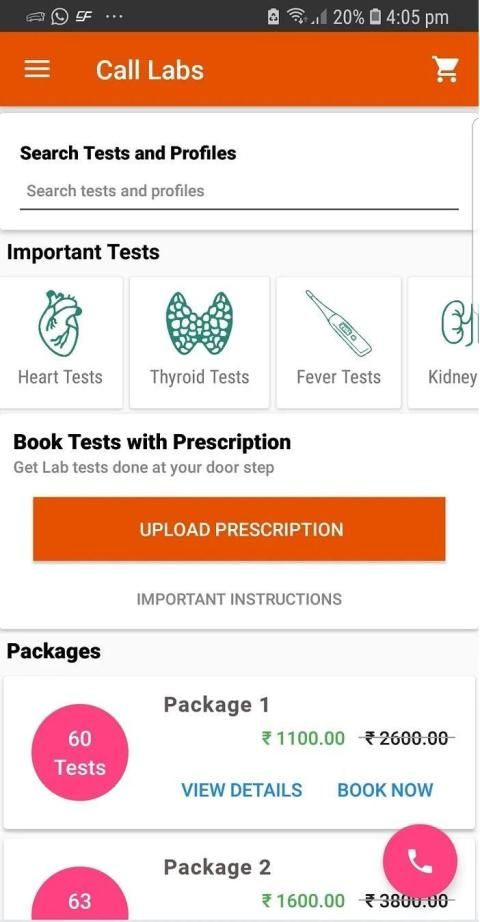 एक उंगली टिप के साथ कॉल लैब्स परीक्षण और पैकेज सेवाओं तक पहुंचें!