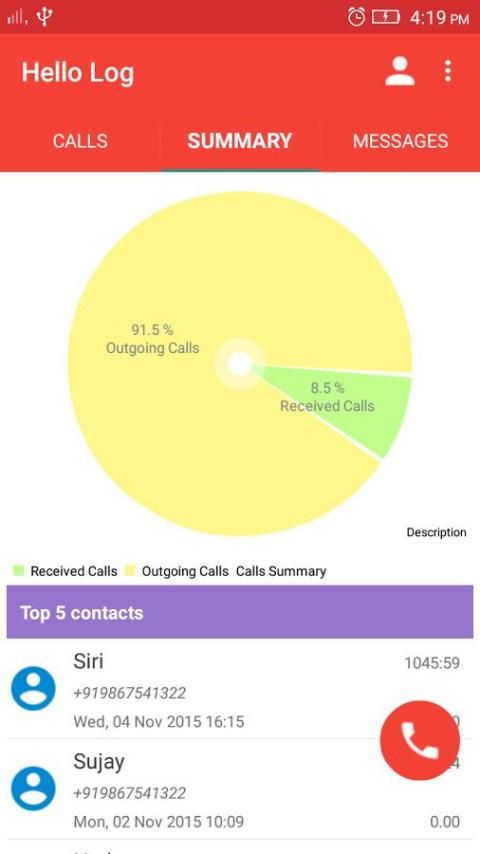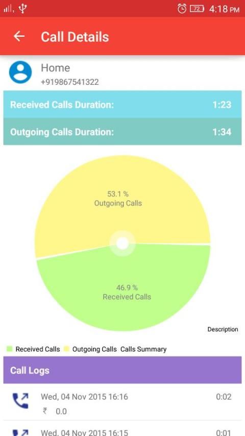 Summary & Cost details are what make this app different from your inbuilt call log. It gives an overall picture of your call history with graphical representation. You can view this for individual contacts as well. Tariff setting allows you to add call rate for different time period.