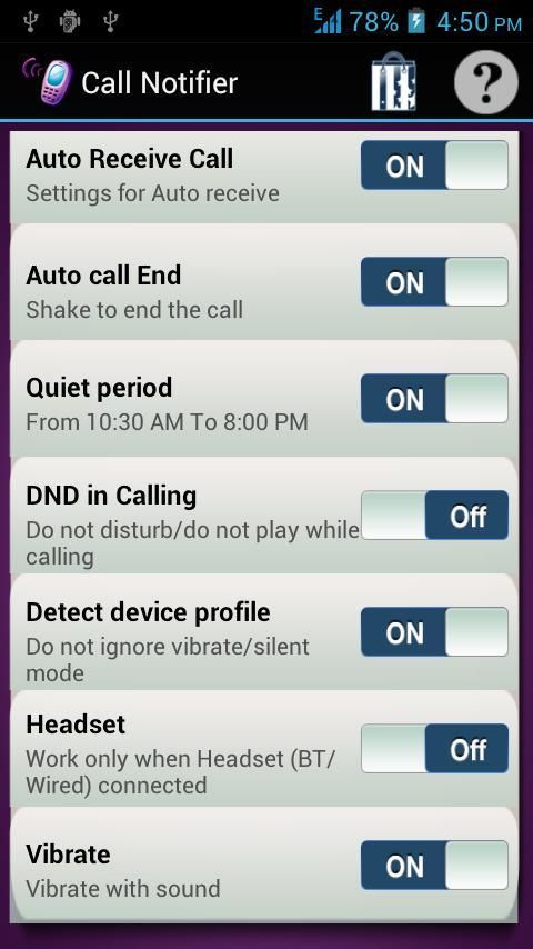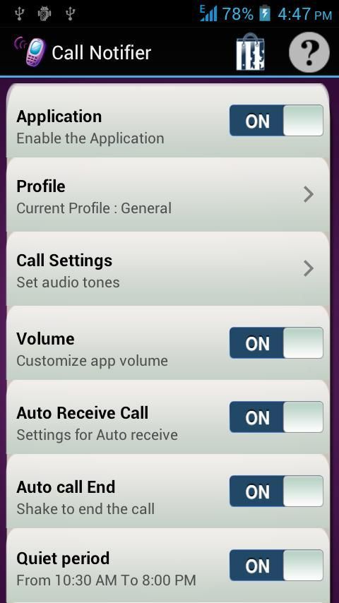 • आप अपने कार्यालय समय 9:00-5:00 कर रहे हैं जैसे तब इस अंतराल आवेदन में शांत रहते हैं और स्वचालित रूप से सेट हो जाएगा आवेदन, आप फोन की घंटी मात्रा बदल सकते हैं इस अवधि में भी, निष्क्रिय बनी हुई है जहां शांत अवधि निर्धारित कर सकते हैं अपने घंटी मात्रा वांछित और आप इस अवधि से बाहर आने के रूप में आप किसी भी कॉल बाहर याद नहीं है तो यह स्वचालित रूप से मूल घंटी मात्रा की स्थापना की जाएगी