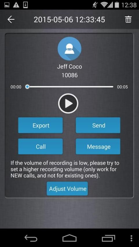 - The recorded voice sounds clear, you can use the app built-in playback and easily export your recorded calls to the SD card, and send by email, WhatsApp or other means;