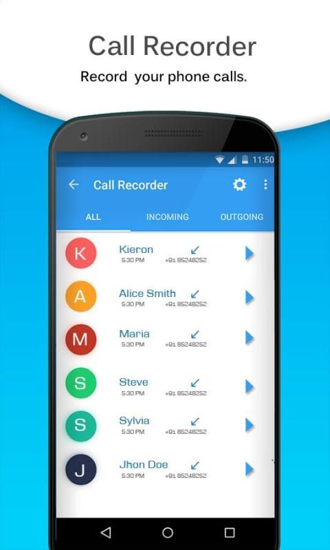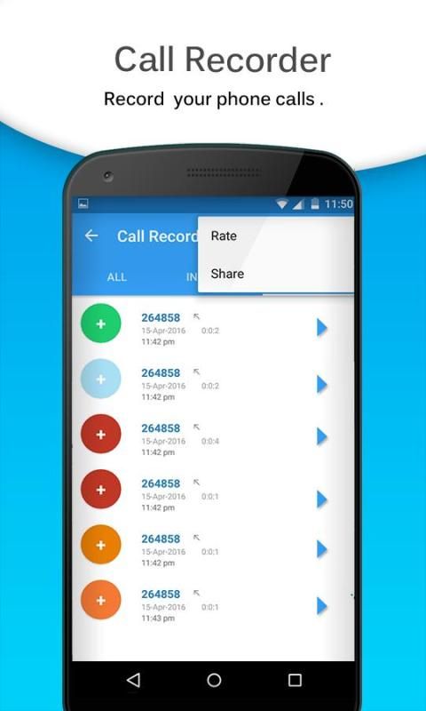 कॉल रिकॉर्डर एक मुफ्त कॉल रिकॉर्डर अनुप्रयोग है। यह स्वत: कॉल रिकॉर्डर Android के लिए एक महान टेलीफोन रिकॉर्डिंग app है, रिकॉर्ड किसी भी फोन कॉल आप चाहते हैं, जो उन या आने \ निवर्तमान फोन कॉल रिकॉर्ड और जो कहता है आप को बचाने या साझा करना चाहते हैं का चयन करने के लिए चुनें।