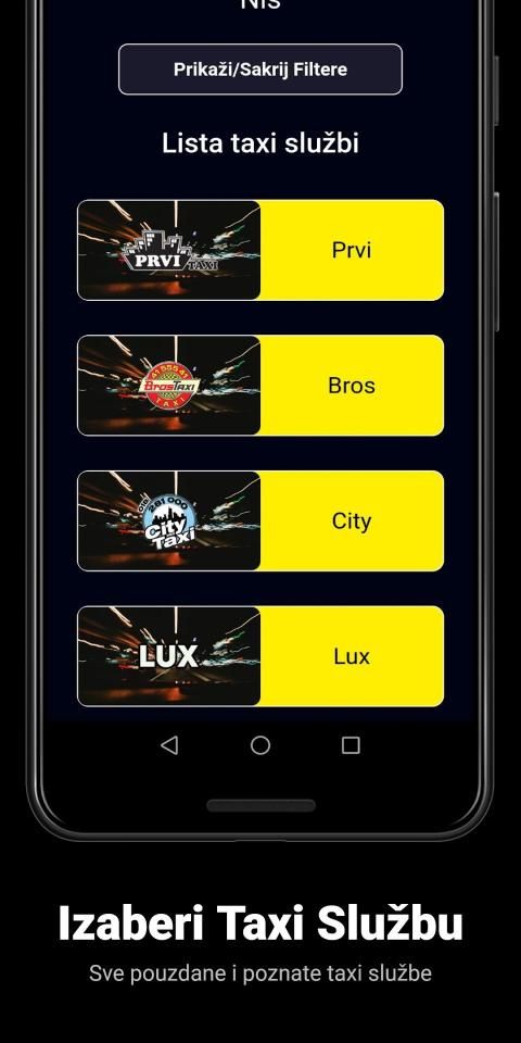 Izaberete grad u kome se nalazite, odaberete jednog od Taxi prevoznika i zatražite vozilo na željenu adresu pozivom na jedan od ponuđenih brojeva.