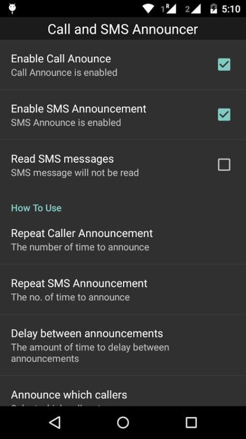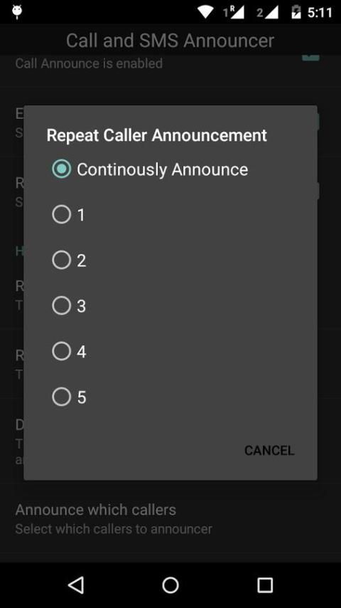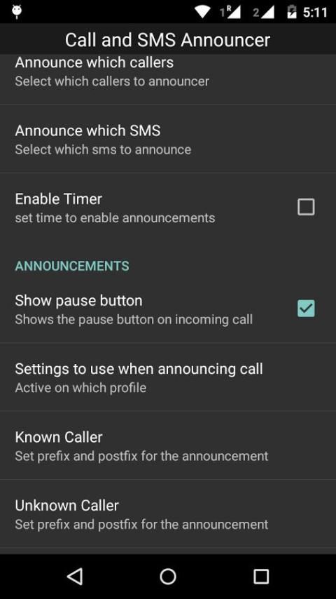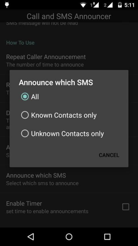 ** Set Announce which SMS (All/Known/Unknown)