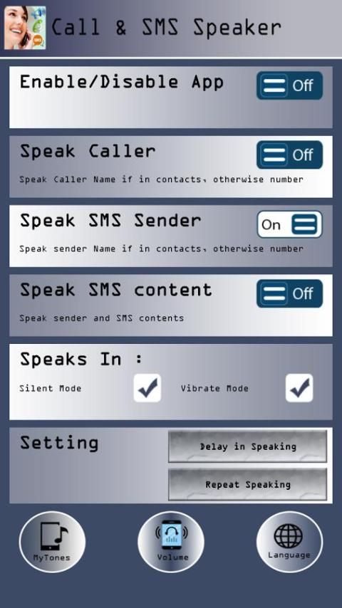 कॉल और अपने स्मार्ट फोन पाठ से वाक् पुस्तकालय नहीं है, तो एसएमएस वक्ता काम नहीं होगा, लेकिन यह एक समस्या आप आसानी से गूगल प्ले स्टोर से इसे डाउनलोड कर सकते हैं नहीं है।