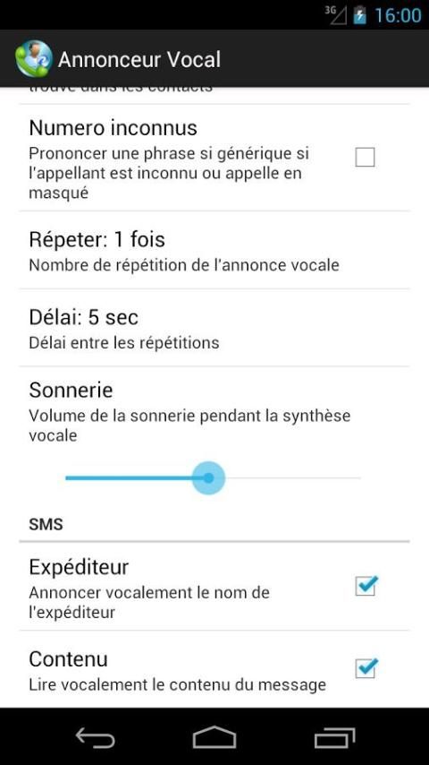 फोन करने वाले का नाम उच्चारण और एसएमएस को पढ़ने के लिए भाषण संश्लेषण इंजन का उपयोग करता है जो आवाज उद्घोषक.