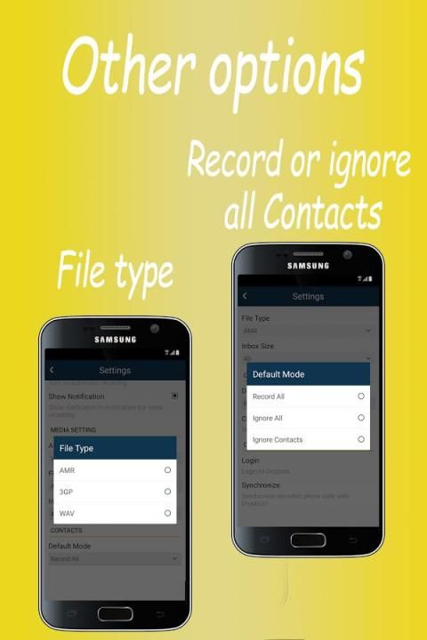 स्वचालित कॉल रिकॉर्डर फ्री और प्रो अब आप अच्छा ऑडियो गुणवत्ता के साथ सभी आने वाली और बाहर जाने वाले कॉल रिकॉर्ड कर सकते हैं। यह प्रयोग और सही ध्वनि की गुणवत्ता के लिए बहुत आसान नहीं है। आप अपने रिकॉर्डिंग, एंड्रॉयड में अपने फोन के लिए अपने मुक्त कर सकते हैं। किसी भी आने वाली और बाहर जाने वाले फोन कॉल आप चाहते हैं रिकॉर्ड और जो कहता है आप को बचाने के लिए चाहते हैं चुनें। आप सेट कर सकते हैं जो कॉल दर्ज कर रहे हैं और जो उपेक्षा कर रहे हैं। रिकॉर्डिंग को सुनो।