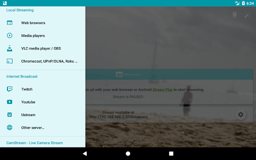आप ट्विच, यूट्यूब, यूएसस्ट्रीम, और किसी अन्य इंटरनेट लोकप्रिय स्ट्रीमिंग सर्वर को स्ट्रीम (आईआरएल मोबाइल प्रसारण) कर सकते हैं।