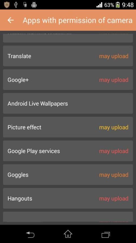 कैमरा अनुमति का उपयोग करते हुए कि एप्लिकेशन सूची देखें।