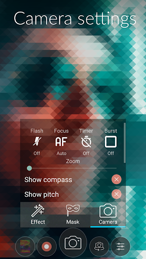 आपके कैमरे और छवियों पर मानक प्रभाव लागू होते हैं लेकिन एक मुखौटा का उपयोग करते हैं। परिणाम वास्तविक छवियों का एक अद्वितीय एआर मिश्रण है और फ़िल्टर किया गया है ... लाइव।