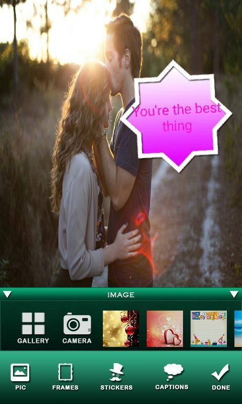 इस अद्भुत पाठ तस्वीर संपादक जाओ और उन्हें प्यार उद्धरण और संदेशों को जोड़ने और अपनी खुद की तस्वीर वॉटरमार्क बनाने के द्वारा अद्भुत यादों में अपने चित्रों की बारी! चित्रों, समय और तारीख टिकटों, अपने पसंदीदा गाने के बोल, प्यारा स्टिकर के लिए पाठ जोड़ें, और आपके खूबसूरत प्रेम यादें जादुई फोटो प्रभाव होगा!