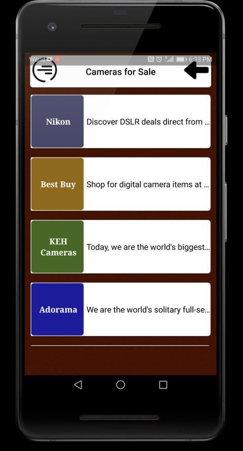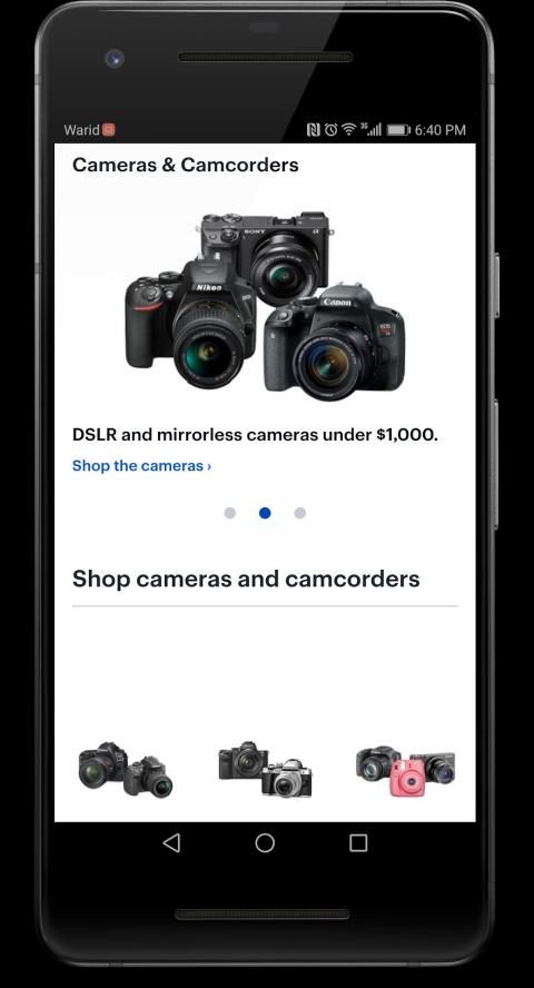इस एप्लिकेशन के माध्यम से निकॉन, ओलंपस, सोनी, एप्पल, कैनन, पैनासोनिक, कोडक और जेबीएल जैसे सर्वश्रेष्ठ ब्रांडों के डिजिटल कैमरों, डीएसएलआर कैमरों और हैंडीकैम के लिए कैमरा सौदों की खोज की गई है। फ्लैश और लेंस सहित शॉप कैमरा सामान।