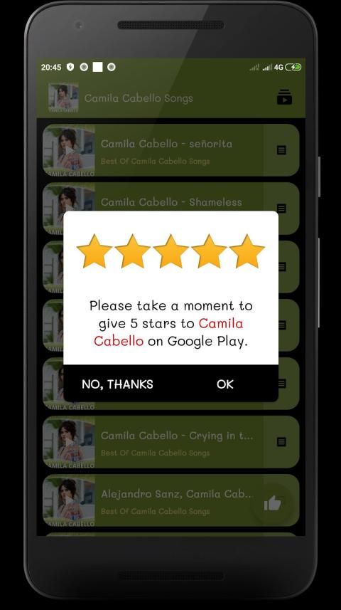 Let us know of what you think about our App in the reviews and what could be improved for your Camila Cabello Songs Application and If you like my app, please rate us 5 stars and leave a nice comment, thank you so much