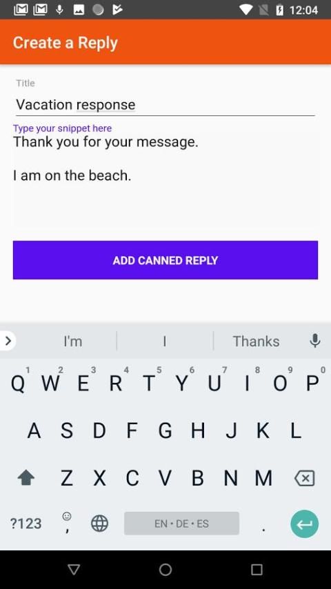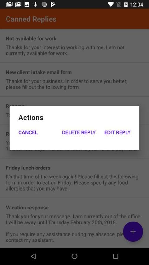 डिब्बाबंद जवाब एंड्रॉयड आप को बनाने, संपादित, और डिब्बाबंद जवाब हटाने की अनुमति देता है के लिए।