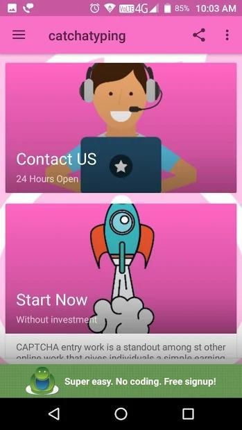 आप ऑनलाइन में अपने घर पर सरल कैप्चा एंट्री जॉब्स करके अच्छी कमाई कर सकते हैं। सफलतापूर्वक प्रवेश के बाद, हम आपको कैप्चा भरने के लिए उपयोगकर्ता नाम, पासवर्ड और सॉफ्टवेयर के साथ लॉगिन आईडी देंगे। आप इसे अपने टैबलेट और स्मार्ट फोन पर कर सकते हैं।