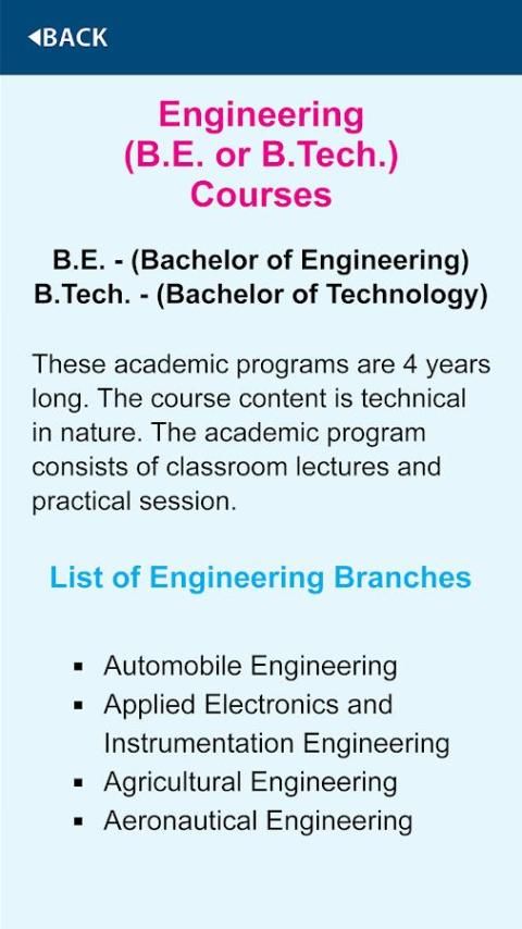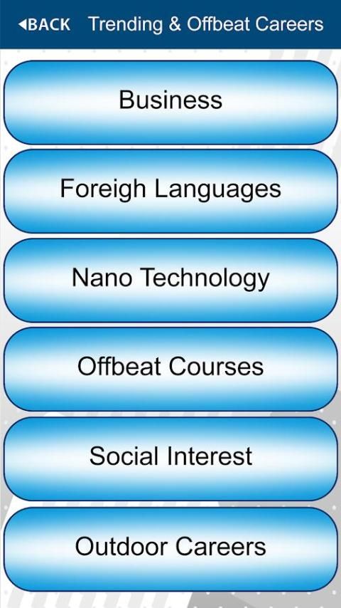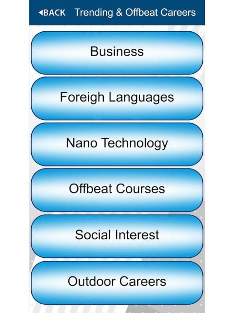 इस एप्लिकेशन को नियमित पाठ्यक्रमों, लीक से हटकर पाठ्यक्रमों के साथ ही प्रचलित पाठ्यक्रम और रोजगार की संभावनाएं चयनित पाठ्यक्रम से संबंधित है और यह भी शीर्ष संस्थानों उन पाठ्यक्रमों और नौकरियों आप संबंधित क्षेत्र में मिल के प्रकार की पेशकश के बारे में आपका मार्गदर्शन करेगा।