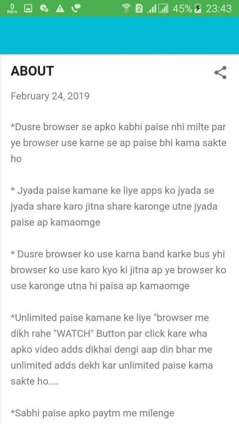 * Dusre browser ko use karna band karke bus yhi browser ko use karo kyo ki jitna ap ye Browser ko use karonge utna hi paisa ap kamaomge