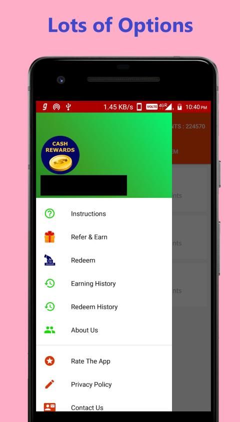 कैश रिवार्ड्स ऐप का मुख्य उद्देश्य उन कार्यों के आधार पर पेटीएम कैश और पेपल कैश देना है, जिन्हें उपयोगकर्ता पूरा करेंगे। ये कार्य थर्ड पार्टी ऑफ़रवॉल्स जैसे ऑफ़रटोरो, सुपरवार्ड्स आदि द्वारा प्रदान किए जाएंगे। ये ऑफ़रवॉल्स प्रोत्साहन विज्ञापनों की पेशकश करते हैं। यदि आप हमारे ऐप में दैनिक जांच करने आते हैं तो हम आपको मुफ्त अंक भी देते हैं।