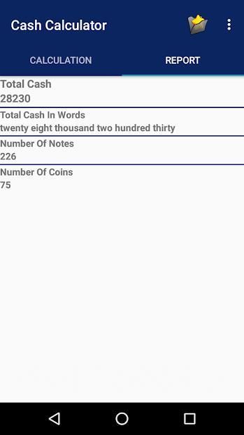 In Cash Counter app user can store his cash details and its calculation. In this app user have to enter notes or coins quantity . All calculation are done in fraction of time. user can get calculation result in digits as well as in word form. in this app user can store his cash details and also can share it.