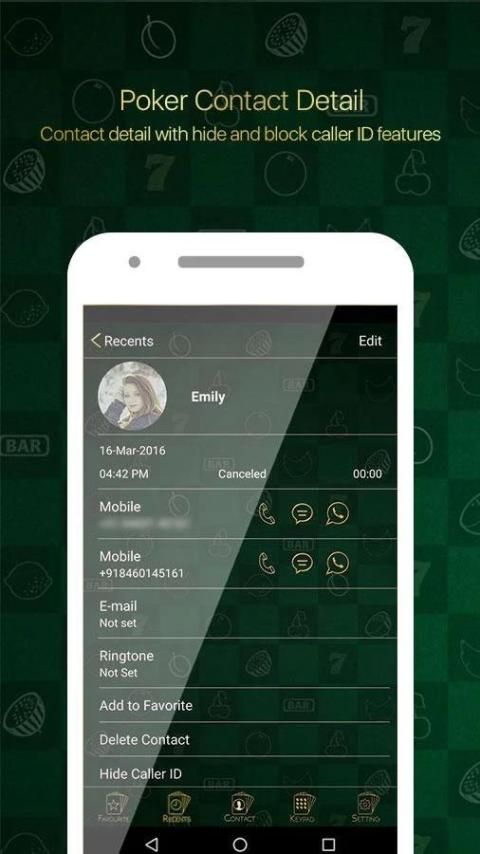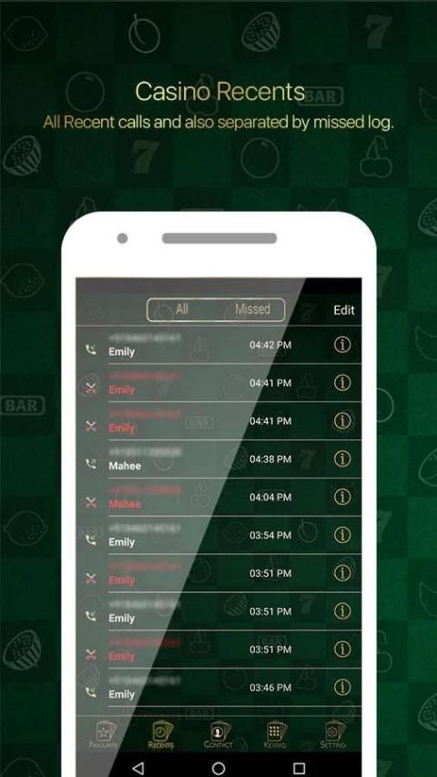 ◉ कसीनो कॉल डायलर पूरी तरह से संपर्क, पसंदीदा, हाल ही कॉल लॉग्स और पूर्ण स्क्रीन कोलर आईडी के साथ कार्यात्मक डायलर है।