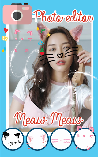 चिड़चिड़े हुए बिल्लियों के चेहरे को देखकर, इसलिए यह आपको एक प्यारा बिल्ली चेहरे की तरह दिखने के लिए कैट फेस कैमरा संपादक के साथ दिखने के लिए, आप अपने पसंदीदा फोटो को एक बिल्ली के चेहरे की तरह जोड़कर देख सकते हैं एक बिल्ली चेहरा स्टीकर: बिल्ली व्हिस्कर बिल्ली कान बिल्ली आंखें।