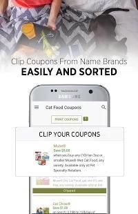 Our free coupon app for Android, comes with a clean and neat design. The interface is so user-friendly that it doesn’t take more than a few minutes to get started. You just need to browse through the available cat food coupons for name brand products that can be found at any grocery store, clip and print them whenever you want to buy that specific cat food, and you are all done.