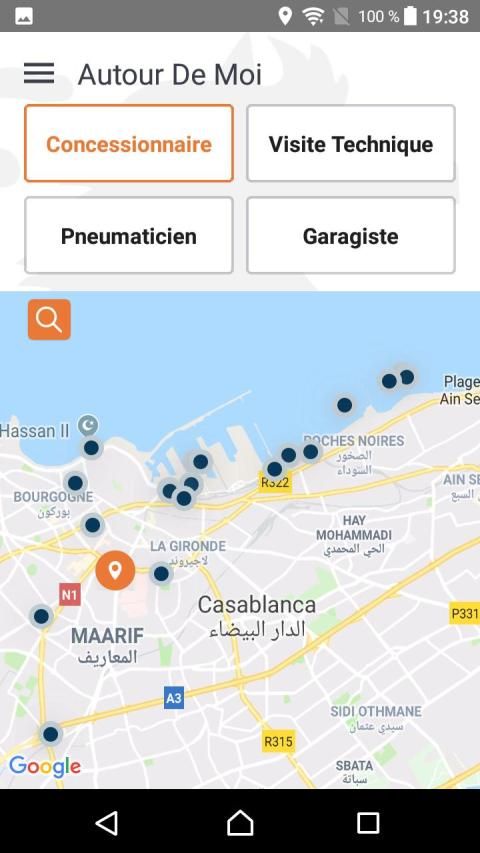 - Géo localiser les Partenaires Chaabi LLD ( Rechercher le partenaire : Garagiste, centre Visite Technique , Pneumaticien …..) ;