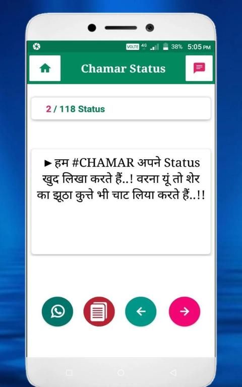 This application provides the brand new chamar attitude status and share. It also contains the Bhim army chief Chandrashekhar Image as a background.