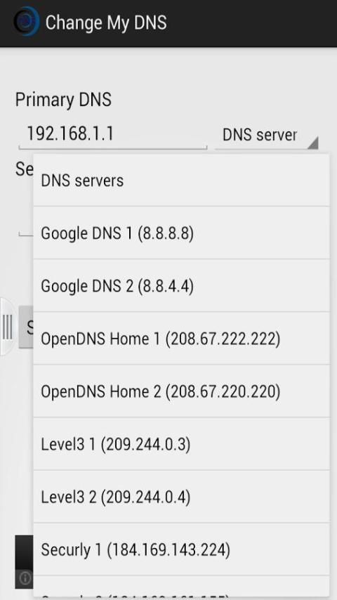 पूर्वनिर्धारित मुफ्त डीएनएस सर्वर की सूची उपलब्ध हैं और उपयोगकर्ता को भी अपने स्वयं के कस्टम DNS सर्वर का उपयोग कर सकते हैं!