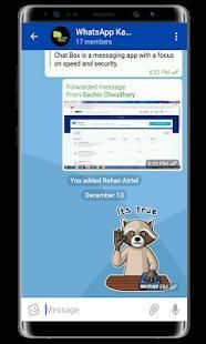 विश्वसनीय: आपके संदेशों को न्यूनतम बाइट्स में संभवतः वितरित करने के लिए बनाया गया है, चैट बॉक्स अब तक की सबसे विश्वसनीय संदेश प्रणाली है। यह सबसे कमजोर मोबाइल कनेक्शन पर भी काम करता है।