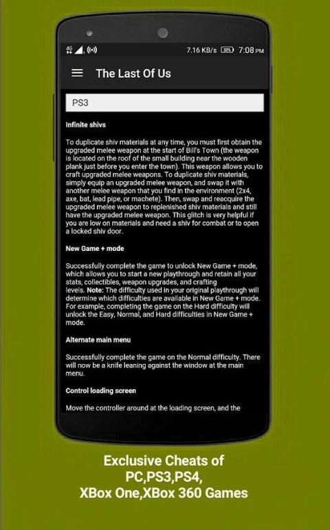Cheatbook आप कोड को धोखा देने और cheatsheets अपने पसंदीदा खेल के कुछ छिपा सुविधाओं को दिलाने के लिए और एक आसान तरीके से उन्हें बहुत आनंद के साथ पूरा करने के लिए आवश्यक प्रदान करता है। इसका बहुत सरल अनुप्रयोग का उपयोग करने के लिए। बाएं से दराज खींचो और निर्दिष्ट श्रेणी से अपने खेल का चयन करें, नीचे स्क्रॉल आप अपने मंच मिल तक (पीसी, PS4, PS3, एक्सबॉक्स एक, एक्सबॉक्स 360, Wii)।