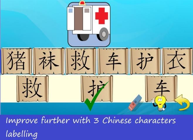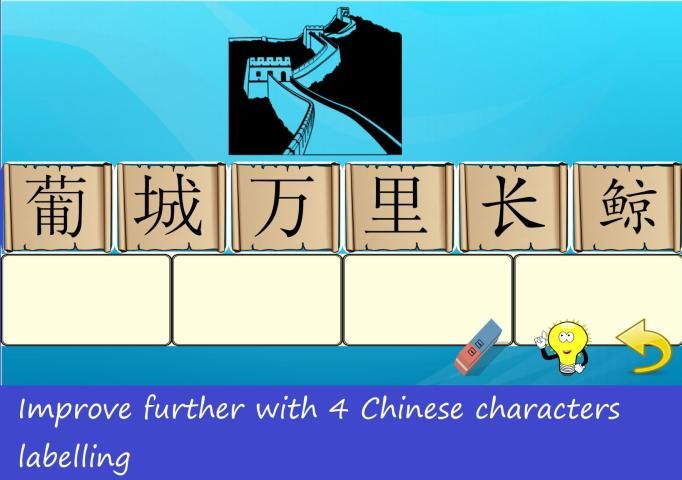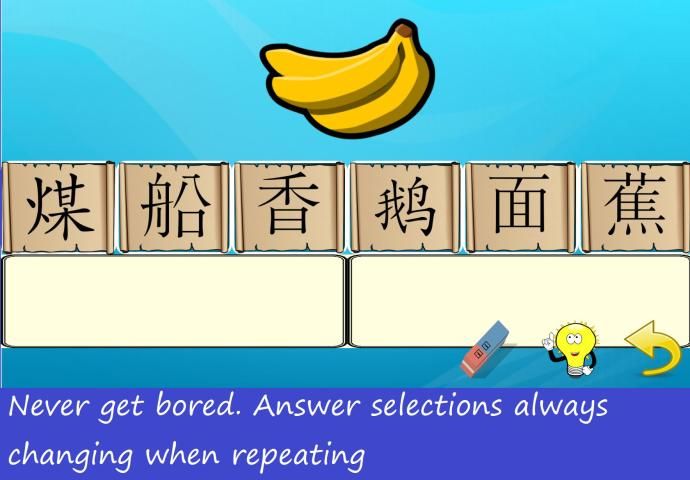 Learn and memorize Chinese characters by matching the Chinese characters with picture (question). Consist of multiple levels