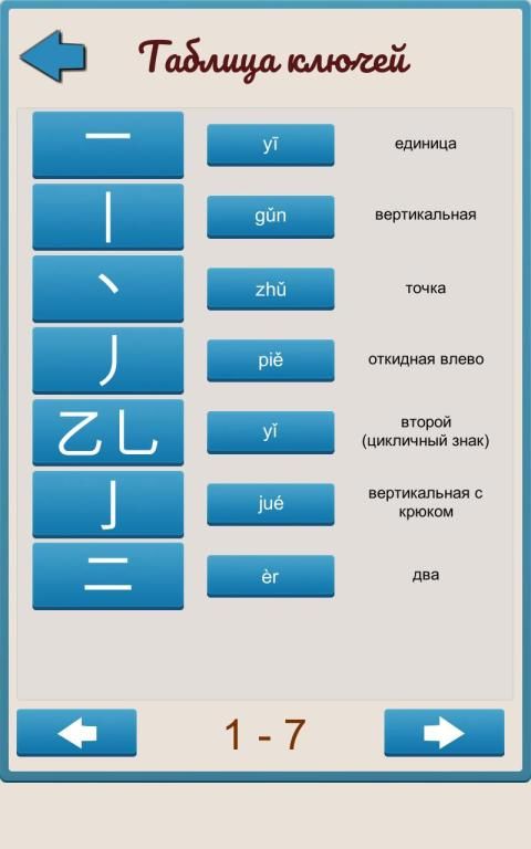 Это приложение создано как дополнительное пособие для тех, кто изучает китайский язык, в частности китайские ключи и иероглифы. В нем делается упор на зубрежку китайских ключей, на запоминание того как китайские ключи пишутся их произношение и значение на русском языке. Предполагается, что пользователи могут не знать как читать транскрипцию и правила написания иероглифов и китайских ключей. Не делайте упор на красоту рисование красивых китайский ключей в этом приложении, делайте упор на запоминание. В любом случае, каллиграфию лучше оттачивать на бумаге, это приложение для запоминания китайских ключей.