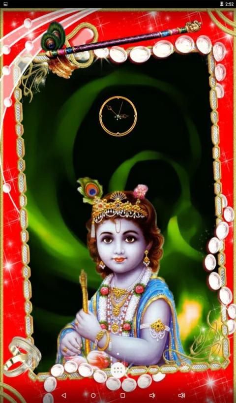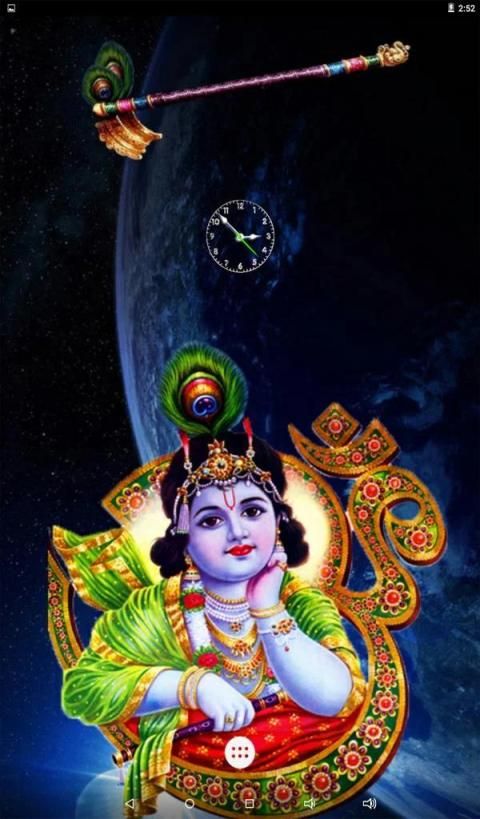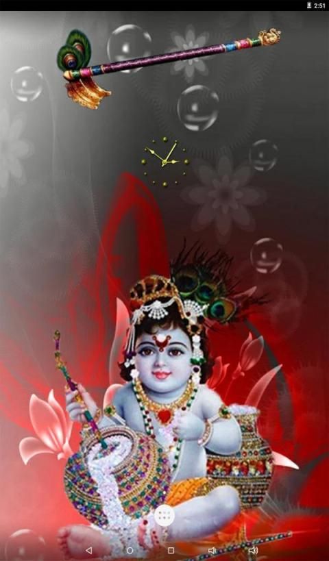 ChinniKrishna analog clock live wallpaper is a wonderful gift to Krishna worshippers. Blue or dark colored deity Krishna is now available in the form of live wallpaper to android mobiles. Download child Krishna LWP for free. You can find the chota krishna playing in the lap of mâa yashoda. Definitely you will love the image of Navneet Chora Krishna steeling makhan from the pot, and the prettiest face covered with makhan. Surely you attracted to chota krishna playing flute in his hands and a peacock feather on his head. Features : ♡ 8 beautiful Krishna images ♡ 8 marvelous unique backgrounds ♡ 4 different clocks ♡ easy-to-use, just select your favorite image, then again go for selecting your loving clock ♡ high quality live wallpaper drains very less battery Installation instructions : Home - menu - wallpaper - live wallpaper -chinni Krishna analog clock. Krishna is also depicted and worshipped as a small child (Bala Krishna, child Krishna, chota krishna, chinni Krishna, young Krishna), crawling on his hands and knees or dancing, often with butter or Laddu in his hand being Laddu Gopal, Gopikrishna stealing butter from neighbouring houses i.e. Navneet Chora or Gokulakrishna. The birth of Lord Krishna is celebrated as Janmashtami, with great devotion in the August/September months, on the Ashtami of Krishna Paksh or the 8th day of the dark fortnight in the month of Bhadon, in the whole of north India. Lord Krishna lived for 126 years and 5 months. He is often shown wearing a yellow silk dhoti and a peacock feather crown, Common depictions show him as a little boy, or as a young man in a characteristically relaxed pose, playing the flute. Feel free to discuss with us, we are always welcoming you for your suggestions, to serve you the best. Thank you, hope you feel the blessings of God and can pray every minute through our live wallpaper.