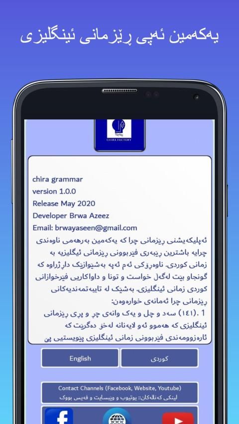 Chira Grammar application which is the first product by Chira Factory is the best learning guide for Kurdish learners of English. The content of the application is designed in a manner that is suitable for the ability and demands of the Kurdish learners of English language. Great features of the app include the following: