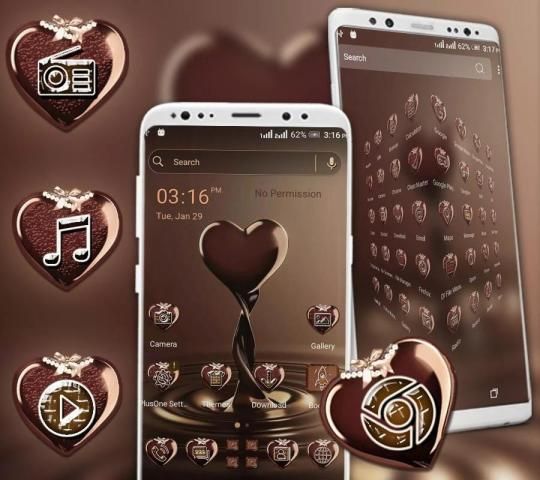 This Chocolate Love Heart Theme Designed by professional graphics expert to present Best Visual effects of your phone,