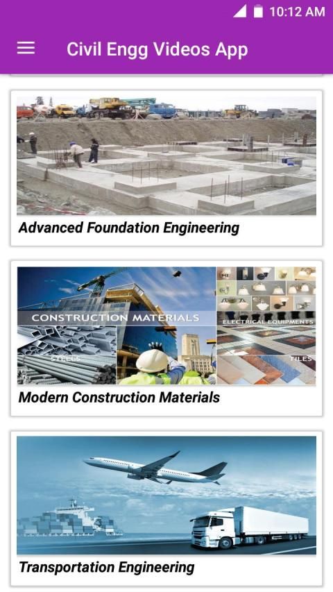 सिविल इंजीनियरिंग विषय वीडियो इस एप्लिकेशन में शामिल हैं -