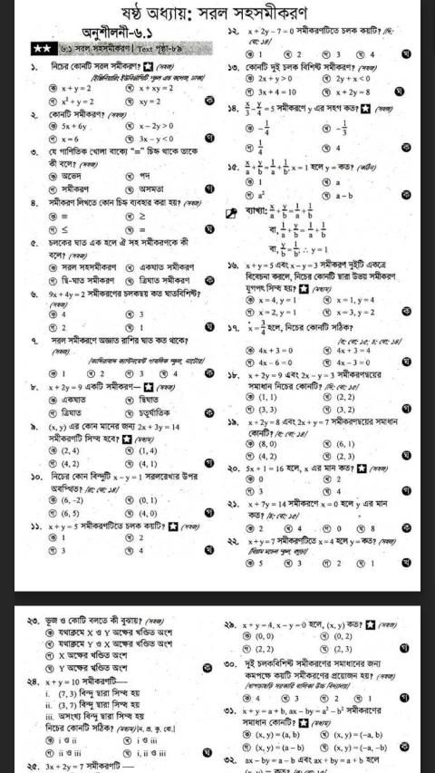 জে.এস.সি গণিত অধ্যায় - ৬ : সরল সহসমীকরণ(১)