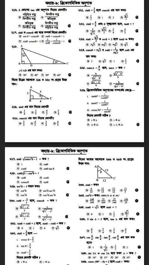 অধ্যায় - ৯: ত্রিকোণমিতিক অনুপাত