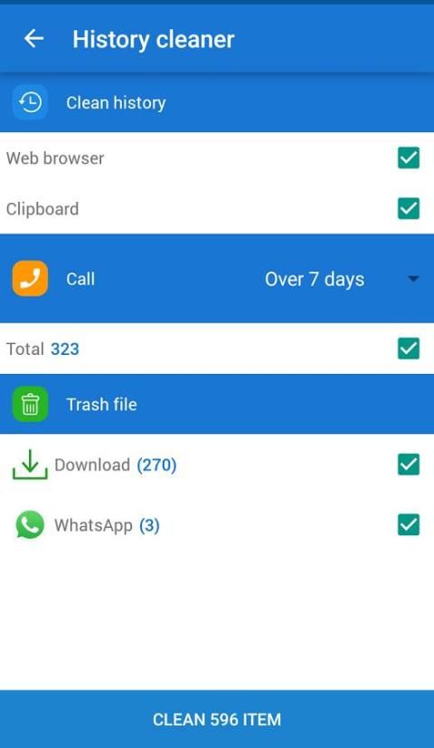 सेकंड में अपने फोन के स्वास्थ्य, स्वच्छ रैम, जंक फ़ाइलें और कैश का पता लगाने। फोन भंडारण विस्तार करने के लिए आसान।