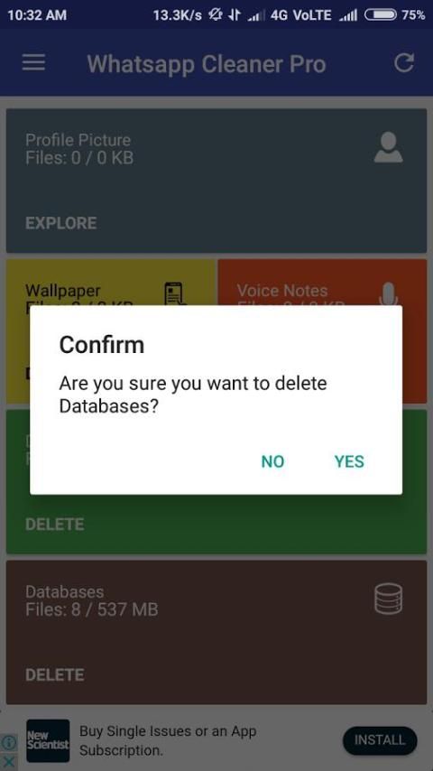 Whatsapp क्लीनर प्रो सभी जगह लेने वाली ऐसी प्राप्त की और भेजा चित्र, ऑडियो, वीडियो, वॉइस नोट, प्रोफ़ाइल चित्र और अन्य डेटाबेस कीमती स्थान नहीं ले रहा के रूप में WhatsApp फ़ाइलें, के लिए अपनी डिवाइस को साफ करेंगे।