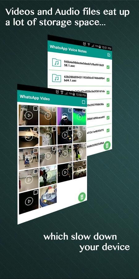 WhatsApp के लिए क्लीनर से साफ या बैकअप के लिए अपने WhatsApp फ़ाइलों सबसे अच्छा साधन है! यह भंडारण अंतरिक्ष को बचाने और अपने एंड्रॉयड डिवाइस में तेजी लाने में मदद करता है।
