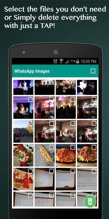 हटाने या अपनी साझा फ़ाइलें, एक के बाद एक, सफाई थकाऊ और समय लग सकता है। WhatsApp क्लीनर के साथ आप सभी के लिए सिर्फ और सिर्फ साफ बटन पर नल है, अप्रयुक्त या अवांछित फ़ाइलों के सभी अपने आंतरिक भंडारण से हटा दिया जाएगा!