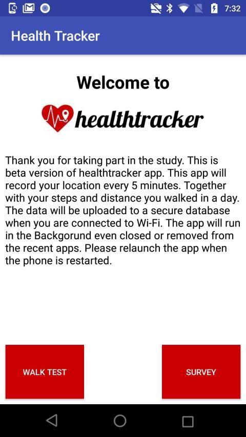 This app allows clinicians to monitor your steps and location. It sends your step data and GPS data to a cloud database (when you have a Wi-Fi connection). This will allow clinicians to monitor your levels of activity and function.